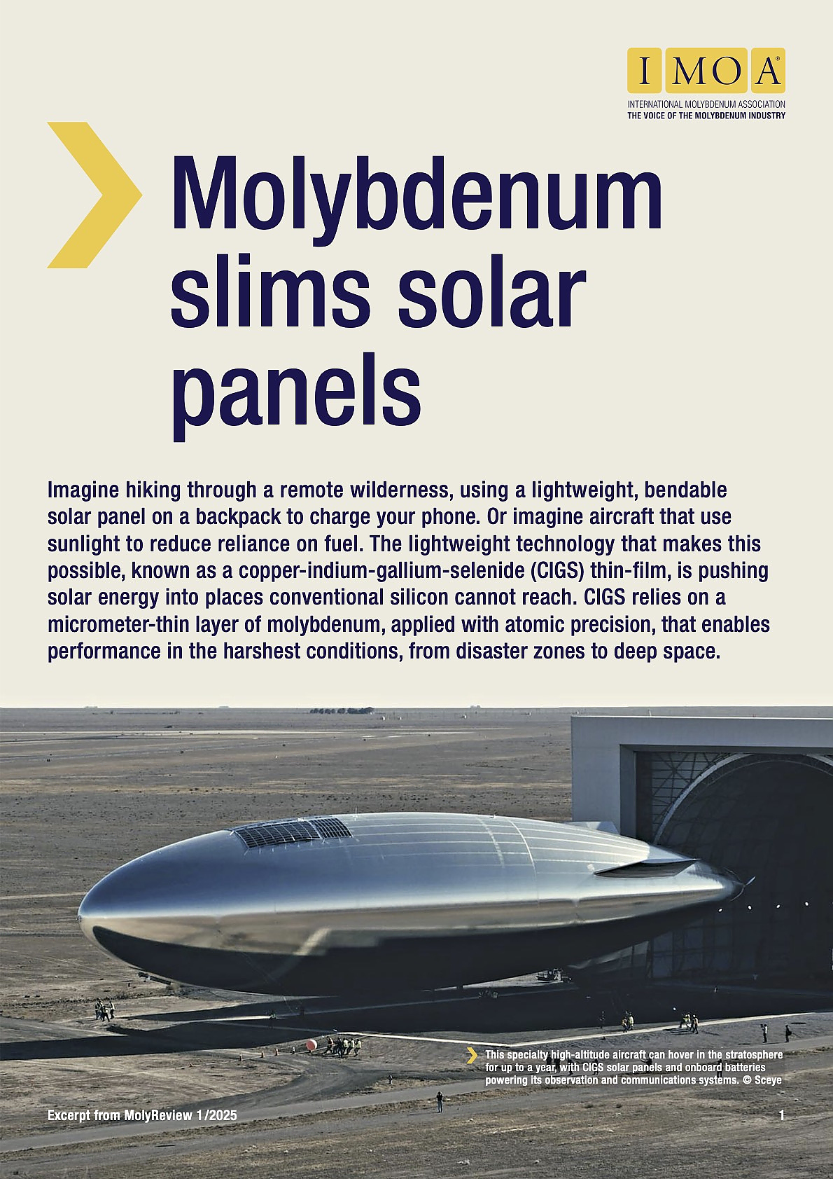 Imagine hiking through a remote wilderness, using a lightweight, bendable solar panel on a backpack to charge your phone. Or imagine aircraft that use sunlight to reduce reliance on fuel. The lightweight technology that makes this possible, known as a copper-indium-gallium-selenide (CIGS) thin-film, is pushing solar energy into places conventional silicon cannot reach. CIGS relies on a micrometer-thin layer of molybdenum, applied with atomic precision, that enables performance in the harshest conditions, from disaster zones to deep space.