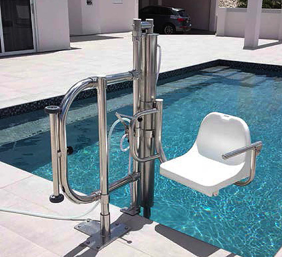 Other common metals like aluminum will corrode even more rapidly when immersed in this type of water. Higher-alloyed stainless steels, designed for exposure to seawater, can be considered for these components but the best alloy choice depends on the specific conditions.  The lift above, for example, is not continuously immersed in the pool water.