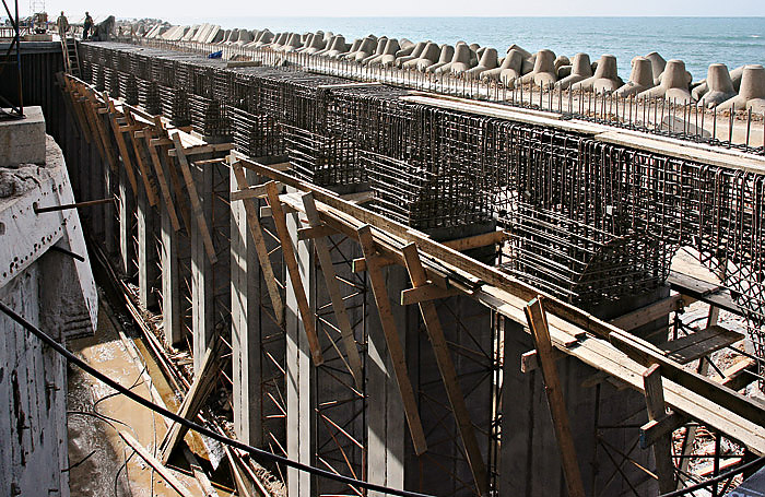 To remedy the problem, a major restoration project was launched in April 2005. Given the building’s importance, the authorities specified that the repaired structure should last 100 years. Three years of testing, study and review went into the design developed to meet the challenge. To meet the long-life requirement, the designers recommended the use of moly-grade stainless steel rebar combined with a concrete highly resistant to chloride penetration.