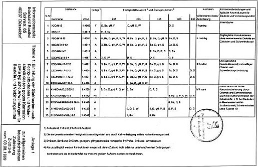Stainless steels are well established as corrosion resistant, low maintenance, construction materials in and around swimming pools. They are found in the pool water as ladders, stairs, and components of wave machines, around the pool, for example as diving boards, and as parts of the building like air conditioning systems, doors and windows. The widespread use is due to the good corrosion resistance, the attractive appearance, the good workability and an acceptable price. The formation of a thin but extremely dense oxide layer on the surface of stainless steels, the passive layer, protects the steel from corrosion. Because of their corrosion resistance stainless steels are also used in structural applications in swimming pool buildings such as for hangers and fasteners of components such as suspended ceilings, wall panels or water piping and air ducts.