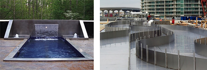 Welded stainless steel pool and spa linings provide long-term durability and are ideal for seismic regions, high-rise pools and other installations where movement is likely and leakage is unacceptable. Stainless steel linings are also an excellent choice for cost-effective retrofits and shape modifications because of the design flexibility possible. The ability to absorb energy without fracturing makes stainless steel ideal as a seismic structural retrofit material. Here are some pool liner resources: